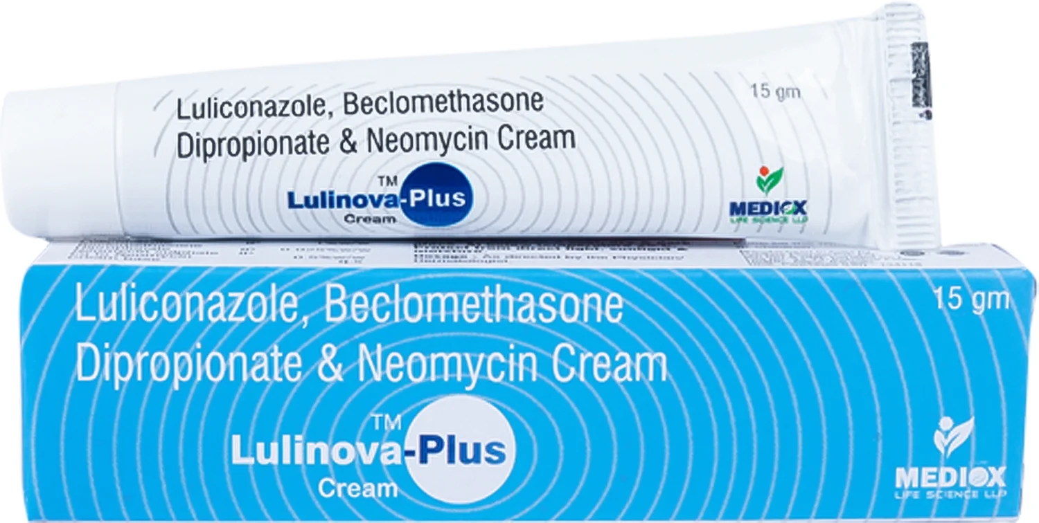 Flucosta Itra Cream by BLUEPILL EXPRESS is a triple-action dermatological formulation containing Luliconazole 1.0% w/w, Beclomethasone 0.025% w/w, and Neomycin 0.5% w/w. It is designed to treat fungal, bacterial, and inflammatory skin conditions by eliminating infections, reducing inflammation, and relieving itching, redness, and swelling. Suitable for conditions like eczema, dermatitis, ringworm, athlete’s foot, and mixed skin infections.
